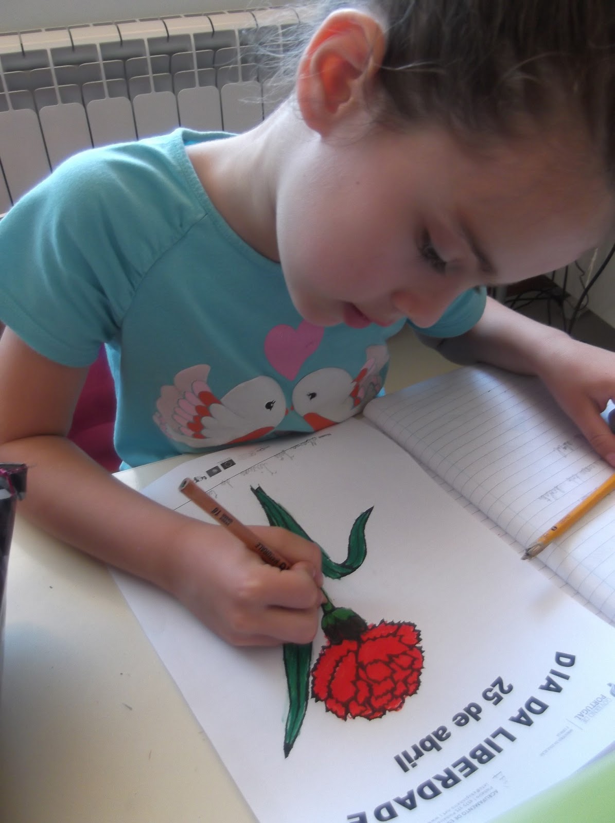 Porque amanhã é feriado é necessário entender o significado do 25 de abril. Assim, os alunos visualizaram um PowerPoint que, com linguagem acessível à faixa etária em causa, explicava o significado do feriado em questão.